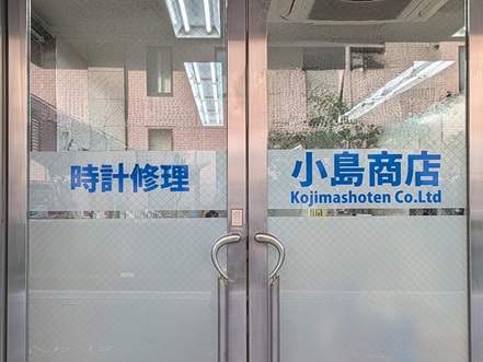 弊社入口のガラスの扉に「小島商店」のステッカーを付けました。